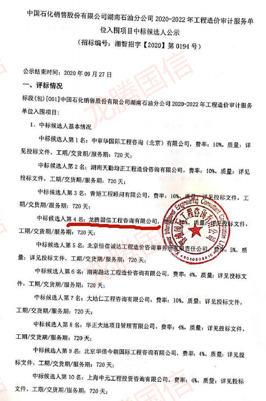 恭賀我公司中標(biāo)‘中國石化湖南石油分公司2020-222年工程造價審計機構(gòu)庫’