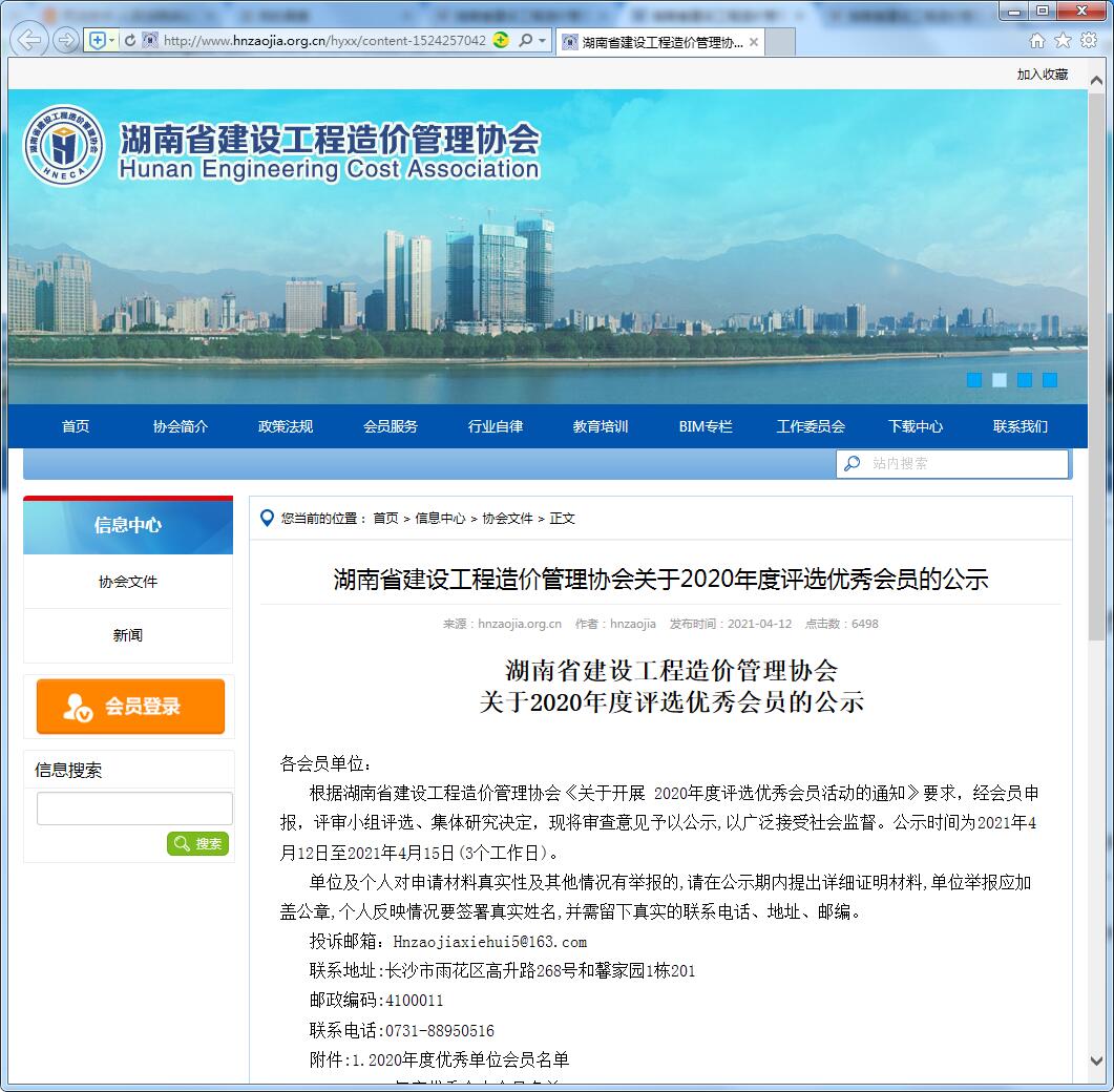 根據(jù)湖南省建設(shè)工程造價管理協(xié)會《關(guān)于開展2020年度評選優(yōu)秀會員活動的通知》要求,經(jīng)會員申報,評審小組評選、集體研究決定,我單位被評為“2020年度優(yōu)秀單位”。
