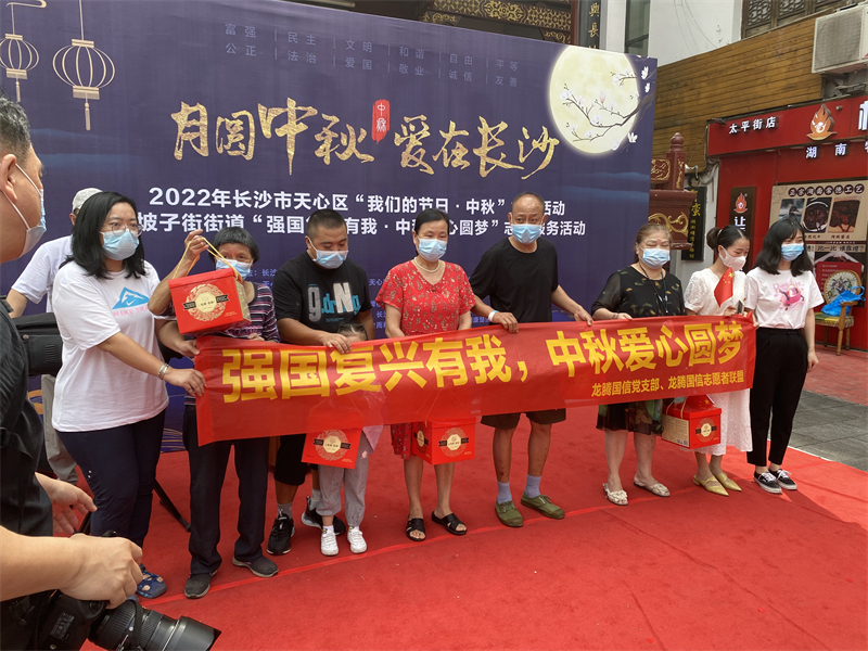 龍騰國信黨支部、龍騰國信志愿者聯(lián)盟近日在長沙市天心區(qū)太平街古戲臺作為協(xié)辦單位,開展四季同行雷鋒家鄉(xiāng)學雷鋒天心區(qū)文明實踐志愿服務“滿天星”行動暨坡子街街道“強國復興有我,中秋愛心圓夢”志愿服務活動。