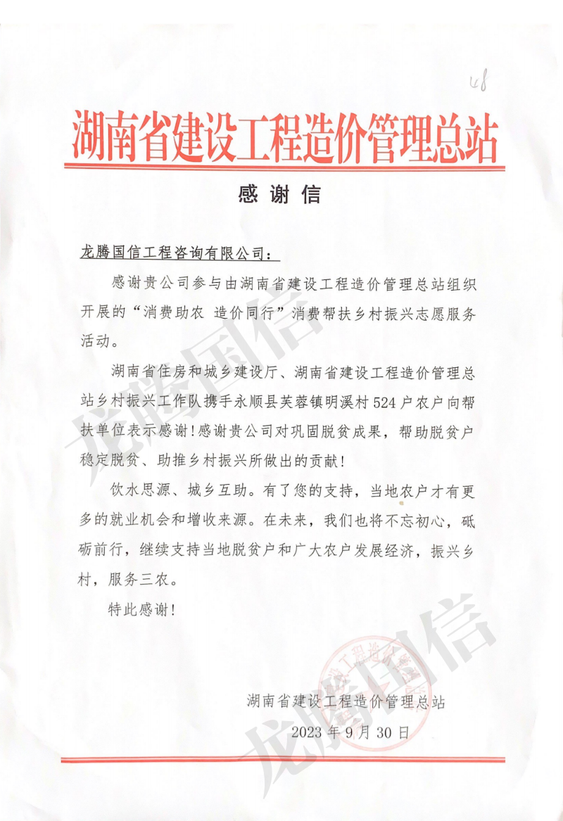 來自省造價管理總站的感謝信